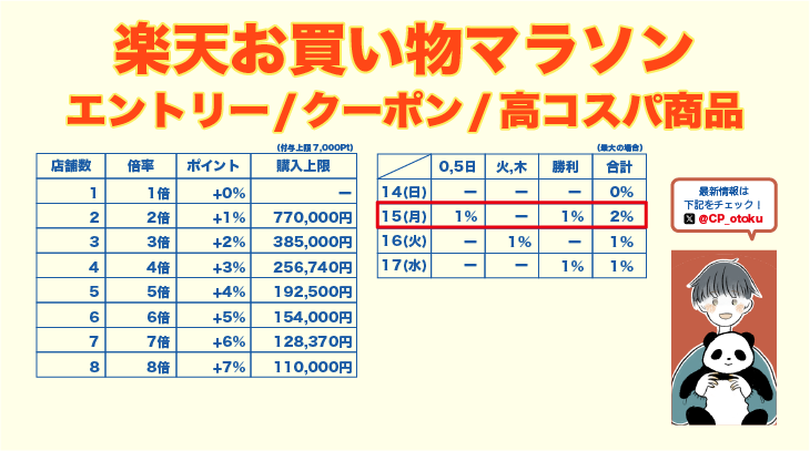 エントリー&クーポン情報まとめました。